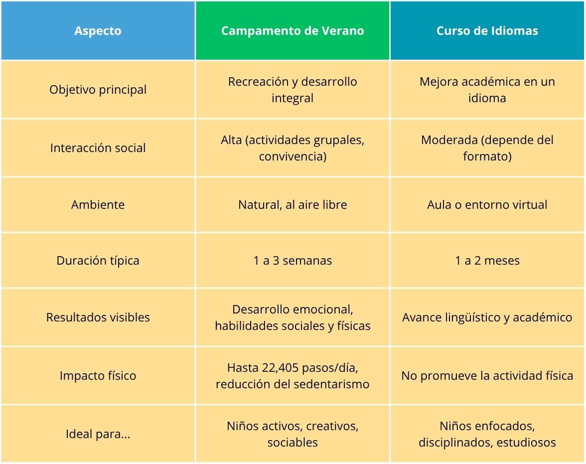 El verano representa una oportunidad única para que los niños y adolescentes vivan experiencias distintas, enriquezcan sus habilidades y, sobre todo, ¡se diviertan! Como padre, probablemente te preguntes: “¿Es mejor inscribir a mi hijo en un campamento de verano o en un curso de idiomas?” Ambas alternativas tienen beneficios importantes, pero la decisión dependerá del perfil de tu hijo y los objetivos que tengas en mente.